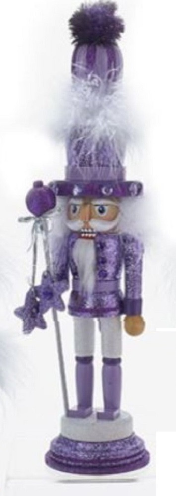This classic nutcracker complete with top hat and staff, in pastel purple will make a beautiful addition to any holiday décor or nutcracker collection.